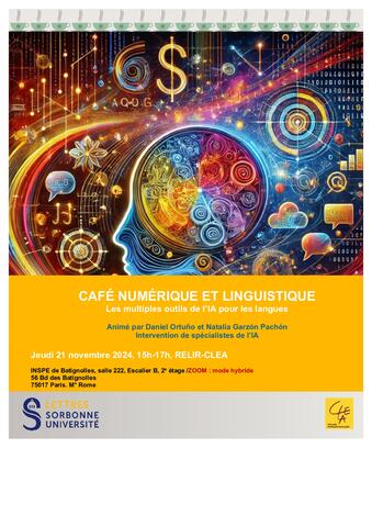 Le café numérique et linguistique est un rendez-vous proposé par RELIR afin d'aborder, dans la convivialité, des questions en liens avec la langue dans toutes ses dimensions: grammaire, traduction, linguistique, nouvelles technologies, ...